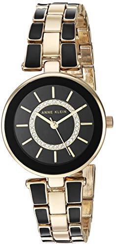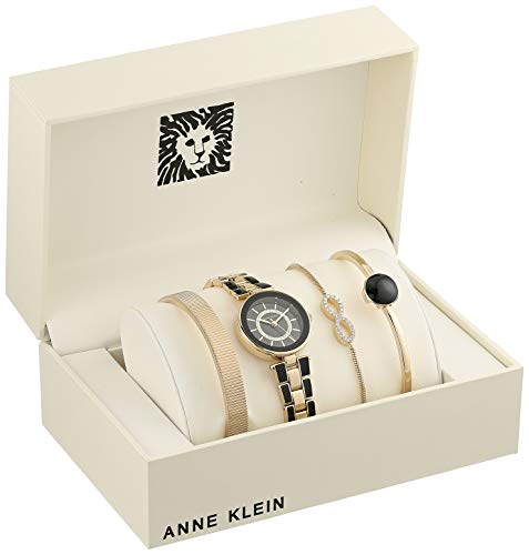 Anne Klein Women’s AK/3286BKST Premium Crystal Accented Gold-Tone and Black Watch and Bracelet Set