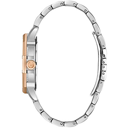 Watch Sizing Guide It’s your time to shine in this Bulova® Crystal – 98C126 watch. Stainless steel case. Two-tone stainless steel bracelet with fold-over, double push-button release. Round face. Three-hand analog display with quartz movement. Brilliant dial embellished with 308 Swarovski® Crystals, gold-tone hands, and hour markers, three subdials and Bulova detailing. Water resistant up to 30 meters. Display case included. Imported. Your Bulova watch is covered by Bulova’s 3-Year Global Warranty. Measurements: Case Height: 42 mm Case Width: 42 mm Case Depth: 10 mm Band Width: 20 mm Band Circumference/Length: 10 in Weight: 6 oz