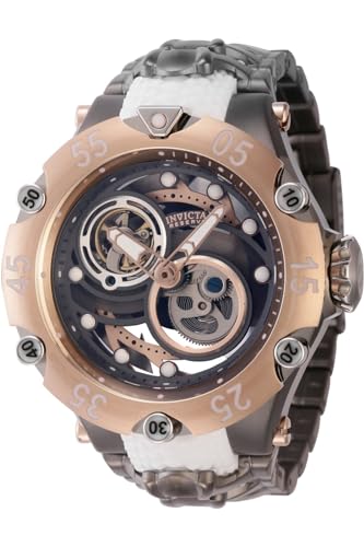 Gunmetal dial enhanced by rose gold-tone hands. Silver-tone stainless steel case with a silver-tone stainless steel band. Automatic movement. 200 meters / 660 feet water resistance. Uni-directional Rotating bezel. Flame Fusion crystal. Transparent See Through caseback. Fold Over clasp. Screw Down crown. Case size 54 mm x 20.40 mm. Band 32 mm x 8.25 incheslong. Invicta 43929 Reserve Watch.