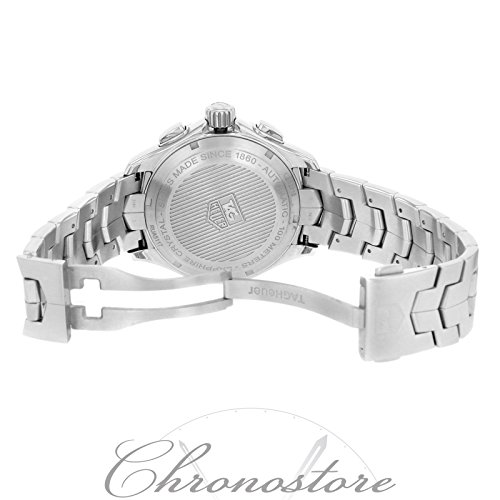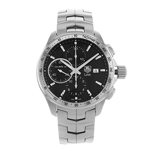 TAG Heuer Men’s Watch|Link Automatic|CAT2010.BA0952- Men’s: This distinctive TAG Heuer Link men’s watch features the legendary Calibre 16 automatic movement. The fixed bezel with tachymeter scale, black dial with a date window, and three chronograph subdials are protected by a curved, scratch-resistant sapphire crystal treated with an anti-reflective coating. The stainless steel S-link bracelet is fastened with a folding deployment clasp. The tough stainless steel case has an alternating polished and fine-brushed surface. The screw-in crown and case back are favored by divers. This sport timepiece is water-resistant to 200 meters.
